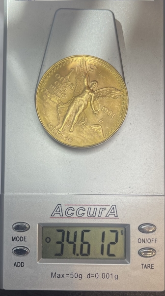 Золотая инвестиционная монета Мексики "Либертад" (Свобода) 31,1 грамм 1981 год