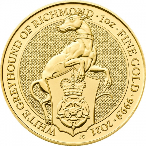 Золотая монета 100 фунтов "Белый Грейхаунд Ричмонда" 2021г.,Au 9999, 31,1г.