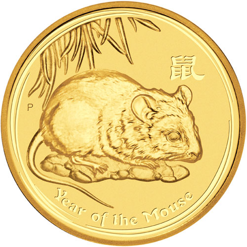 Золотая монета из серии "Лунный календарь" - год Крысы выпущена Пертским монетным двором в 2008 году. Ограниченный тираж.