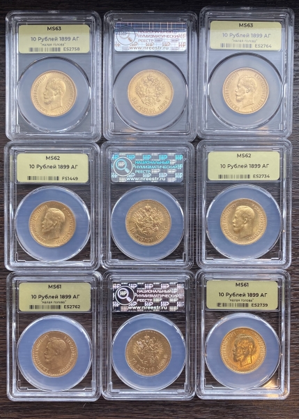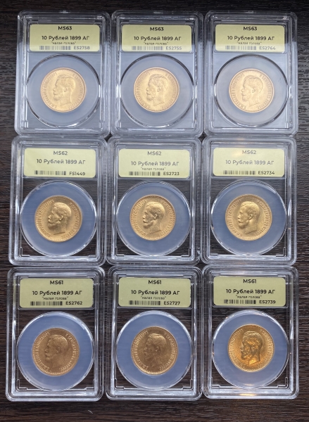 Вы всегда можете купить или продать, а также узнать текущую стоимость монеты - 'Золотая монета Николая II 10 рублей 1899 год в слабах ННР состояние MS 61 - 63' в г.Новосибирск (Новосибирская область). У нас Вы получите полную и необходимую консультация от квалифицированных специалистов и профессионалов, работающих на рынке инвестиций в драгметаллы уже долгое время. Мы стараемся предложить нашим клиентам лучшие цены выкупа и продажи на рынке (с минимальным спредом), а также гарантируем конфиденциальность всех проводимых сделок.
