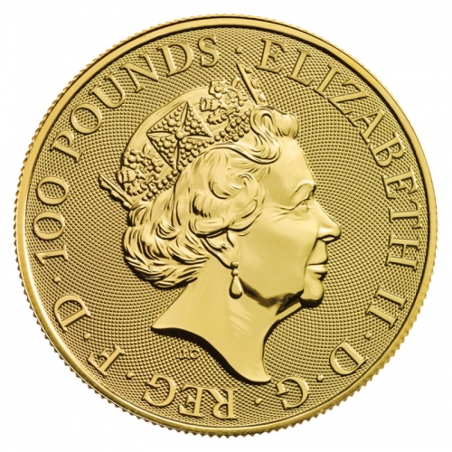 Реверс: показан коронованный единорог, разрывающий цепь и опирающийся на щит. Вдоль края монеты полукругом выгравированы надписи, разделенные точками: вверху – «2018», внизу - «UNICORN OF SCOTLAND» («Шотландский единорог»). Слева обозначены инициалы дизайнера – «JC» ( Джоди Кларк - Jody Clark).